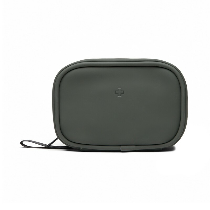 Apteczka, kompaktowa konstrukcja, zamykana na zamek błyskawiczny, wykonana z materiałów pochodzących z recyklingu z certyfikatem RCS, całkowita zawartość materiałów z recyklingu obliczona na podstawie wagi całkowitej przedmiotu: 23%