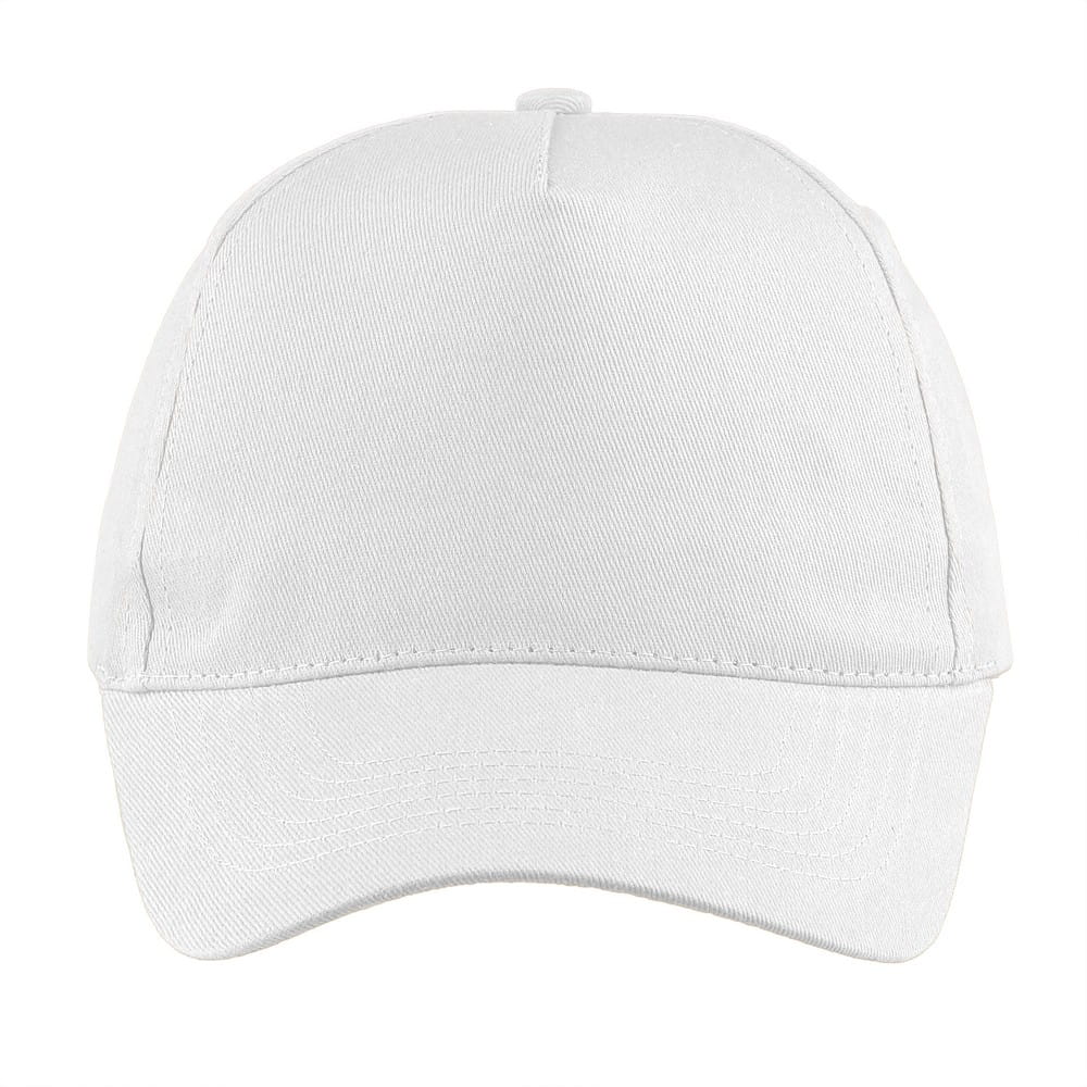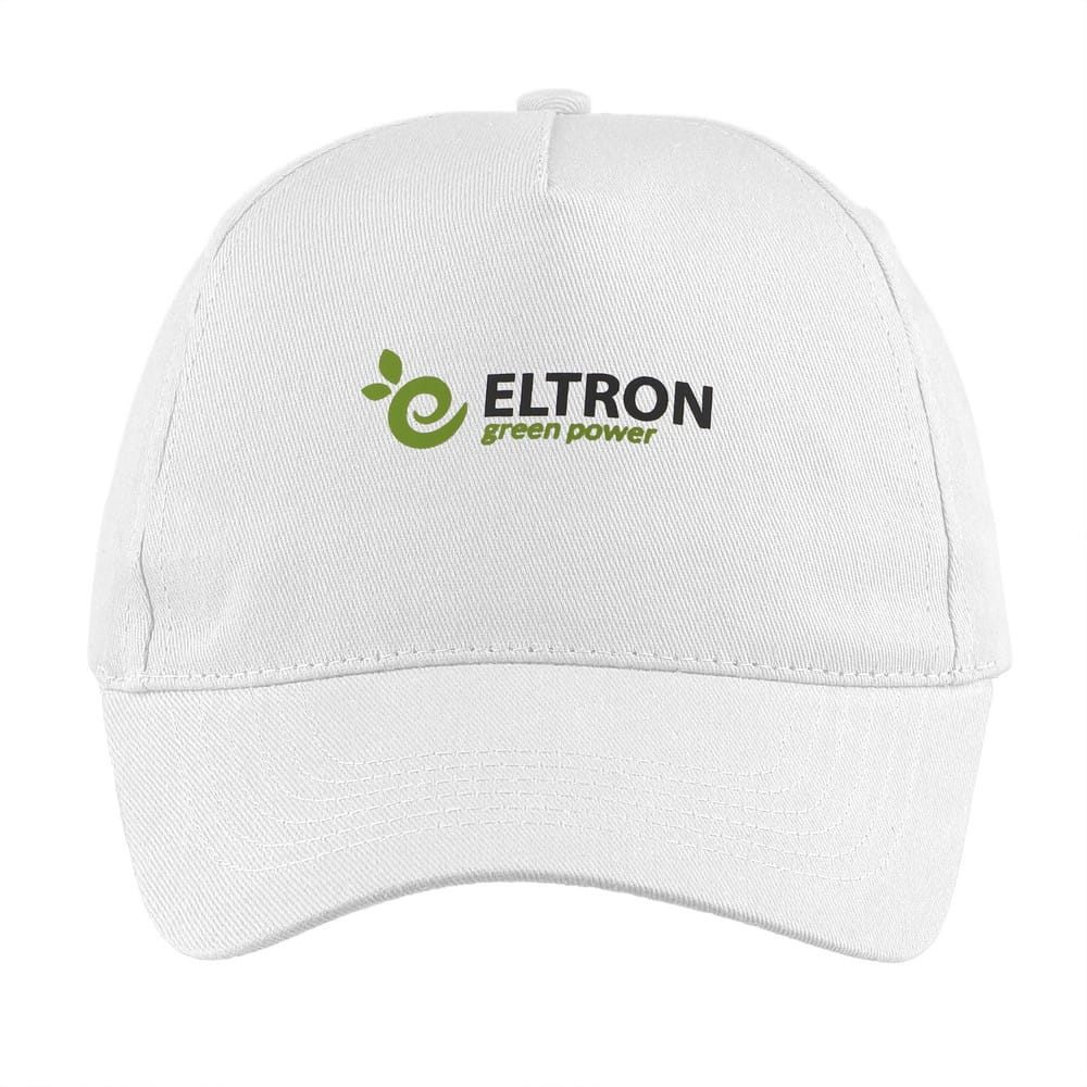 Czapka z daszkiem V7182-02 /kolor: biały/ Czapka z daszkiem, 5 paneli, zapięcie na rzep. Wymiary: 19 x 13 cm. Materiał: 100% bawełna 155 g/m2. Ten produkt znakujemy termotransferem - TF1