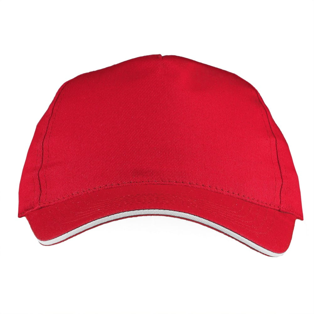 Czapka z daszkiem V7183-05 /kolor: czerwony/ Czapka z daszkiem, 5 paneli, zapięcie na rzep. Wymiary: 19 x 13 cm. Materiał: 100% bawełna 155 g/m2. Ten produkt znakujemy termotransferem - TF1