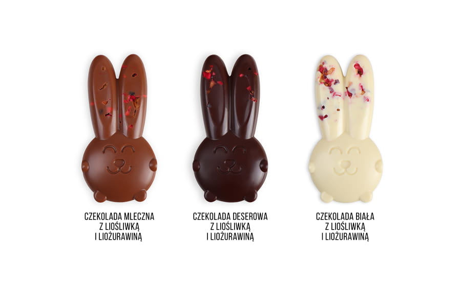 • czekolada mleczna / deserowa / biała z dodatkiem liofilizowanych owoców (śliwka, żurawina)