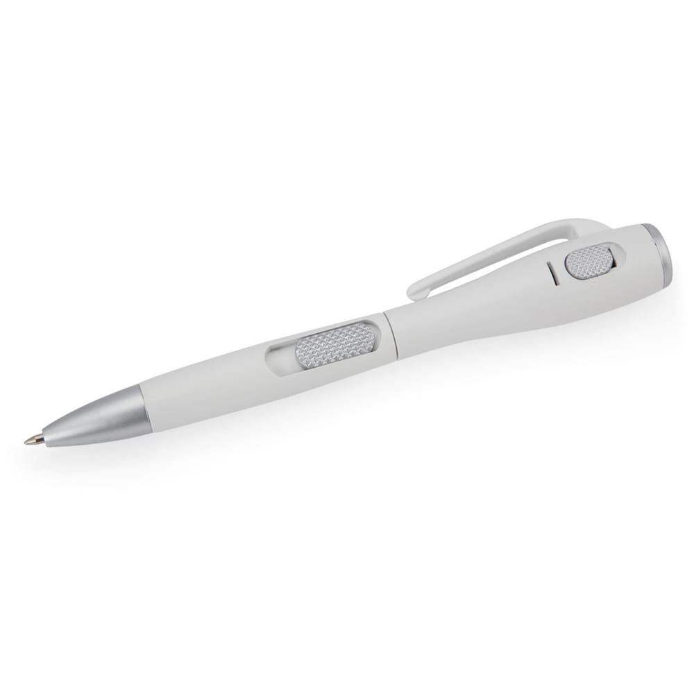 Długopis z lampką LED. Wymiary: _1,5 x 12,7 cm; Materiał: plastik. Technika znakowania: tampodruk. Jeśli masz pytania dotyczące produktu lub zamówienia innego nakładu, skontaktuj się z nami.