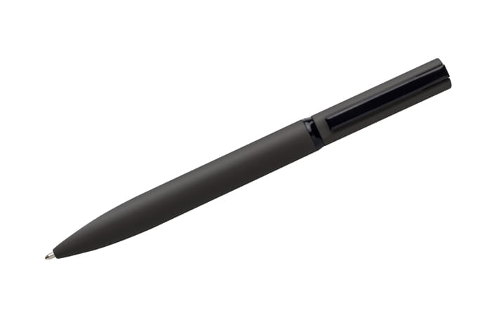 Solidność i szyk - to najlepsza definicja długopisu SOLID. Ciekawy, lekko asymetryczny kształt oraz metalowa konstrukcja. Długopis świetnie leży w dłoni, a obrotowy mechanizm jest niezwykle wygodny w użyciu. Powierzchnia długopisu pokryta specjalną gumowaną farbą, która nadaje matowe wykończenie. Klip i środkowy ring w kolorze czarnym.