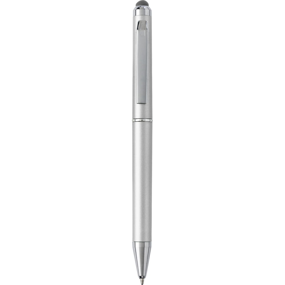 Długopis przekrącany, touch pen ze srebrnymi elementami. Wymiary: _1,3 x 14,4 cm. Materiał: plastik. Technika znakowania: tampodruk. Jeśli masz pytania dotyczące produktu lub zamówienia innego nakładu, skontaktuj się z nami.