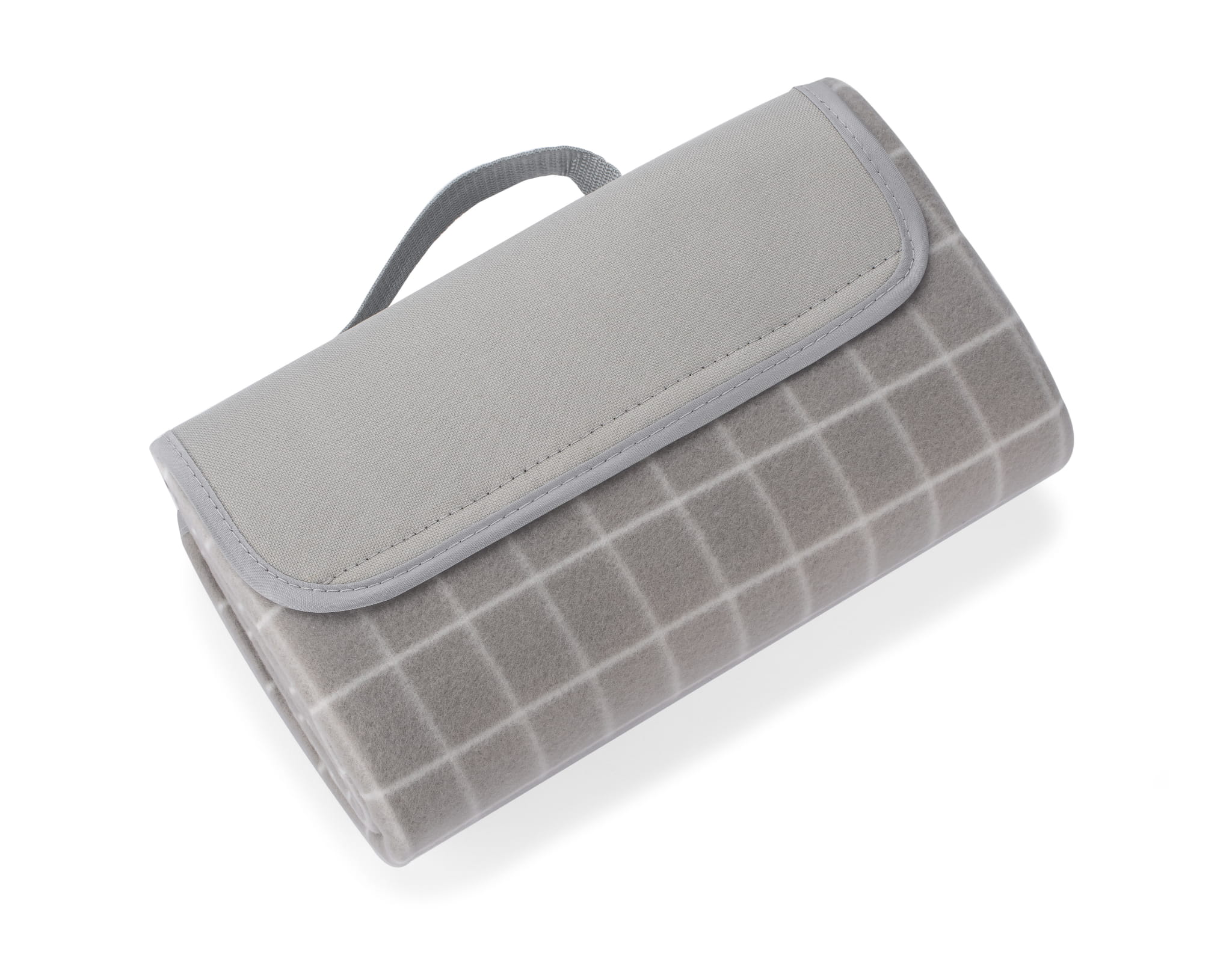 Koc piknikowy wykonany z gładkiego polaru w klasyczny wzór w kratę. Od spodu posiada wodoodporną warstwę PET. Po złożeniu klapa zapinana na rzep.