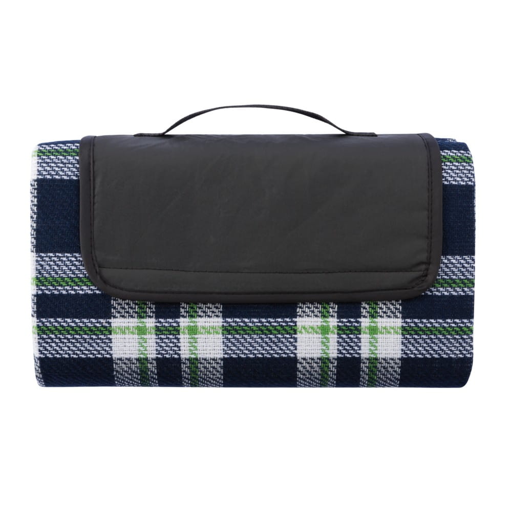 Koc piknikowy tartanowy P459.615 /kolor: niebieski/ Tradycyjny koc piknikowy, wymiary: 130 x 145 cm, góra z akrylu 120 gsm w kolorową kratę, tył wodoodporny PVC 110 gsm. Wymiary: 5,5 x 32,0 x 18,5 cm. Materiał: akryl Ten produkt znakujemy termotransferem - TF1 lub TF2