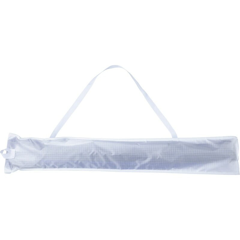 Latawiec o szerokości 160 cm, zawiera dwie plastikowe rączki, pakowany pojedynczo w pokrowiec z regulowanym paskiem do przenoszenia, produkt wykonany z poliestru 210T