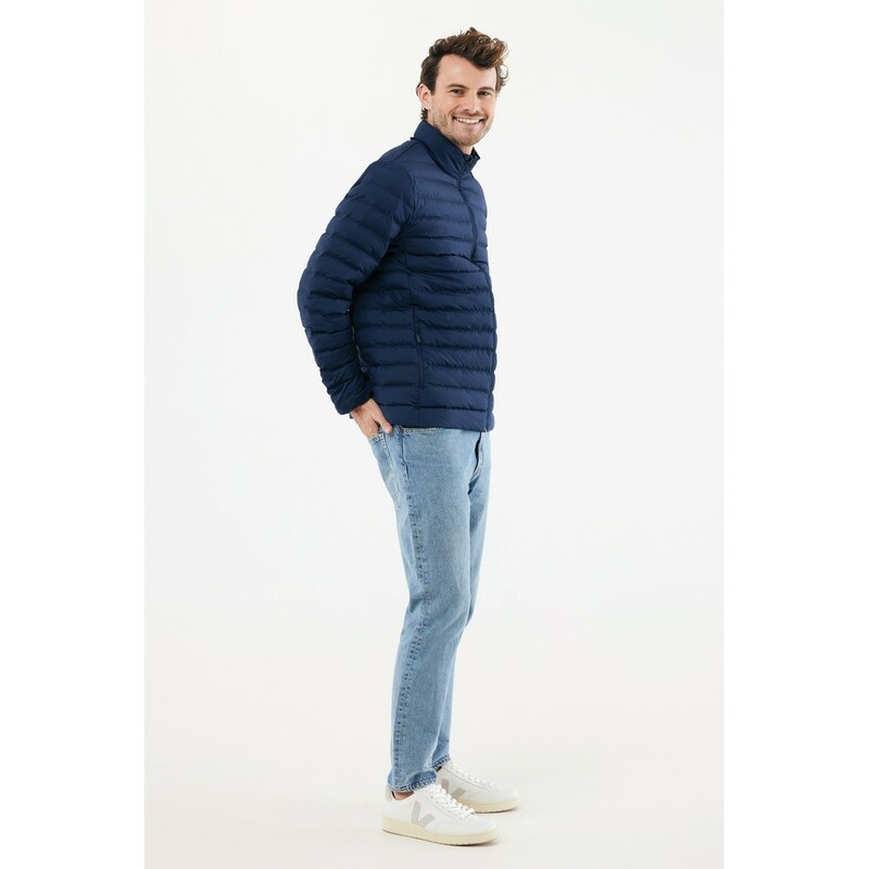 Męska kurtka, pikowana, wykonana w 100% z poliestru z recyklingu, zapinana na zamek błyskawiczny, suwaki dopasowane kolorystycznie, elastyczne mankiety, posiada certyfikat OEKO-TEX® STANDARD 100, posiada znacznik AWARE™, który gwarantuje, że wykorzystane materiały pochodzą z recyklingu, 2% wpływów z każdego sprzedanego produktu jest przekazywane na rzecz Water.org