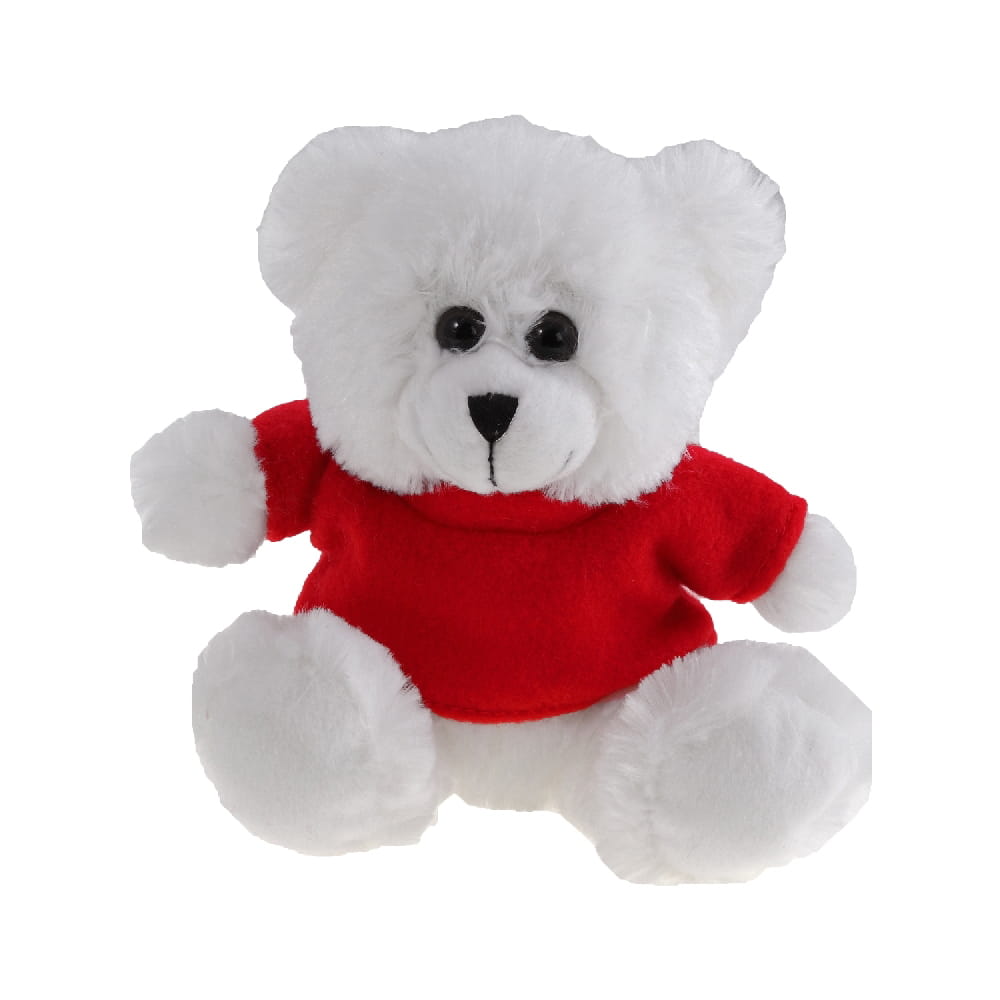 Biały miś z czerwoną koszulką pod nadruk (koszulka pakowana oddzielnie). Wymiary: 15 cm. Materiał: plusz, poliester. Technika znakowania: termotransfer. Jeśli masz pytania dotyczące produktu lub zamówienia innego nakładu, skontaktuj się z nami.