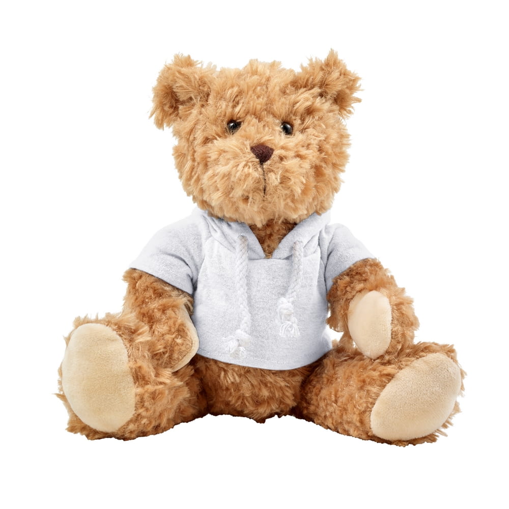 Miś pluszowy z bluzą V7320-02 /kolor: biały/ Miś pluszowy w bluzie z kapturem. Wymiary: 21 cm. Materiał: poliester 100%. Ten produkt znakujemy termotransferem - TF1