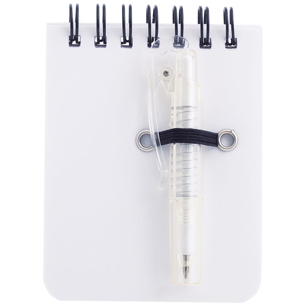 Notes / notatnik z długopisem, spiralne bindowanie, białe kartki.Wymiary: 7 x 9,5 x 0,7 cm. Materiał: plastik. Technika znakowania: tampodruk. Jeśli masz pytania dotyczące produktu lub zamówienia innego nakładu, skontaktuj się z nami.