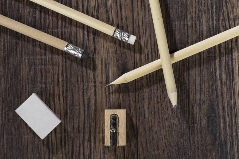 Klasyczny, drewniany ołówek z gumką. Twardość HB. Ołówek zatemperowany. Logo wygrawerujemy lub nadrukujemy na powierzchni ołówka.