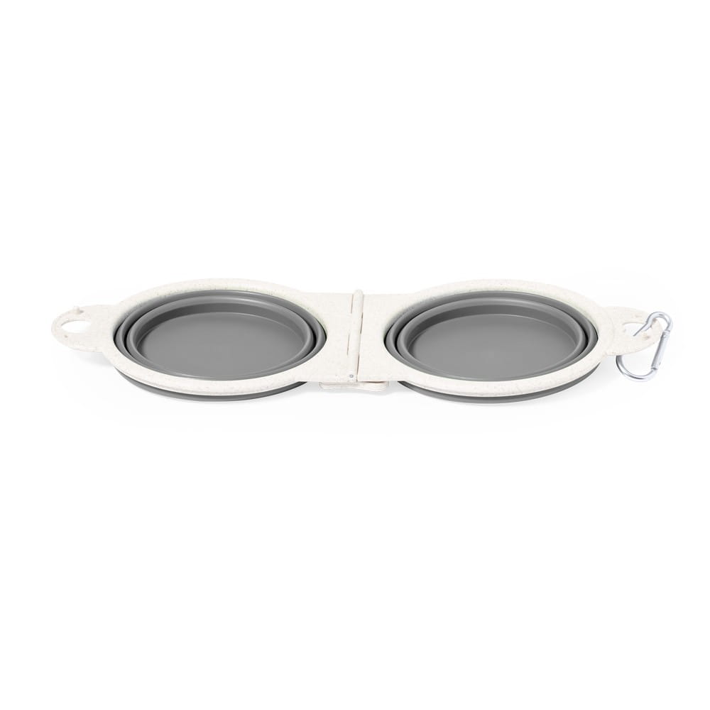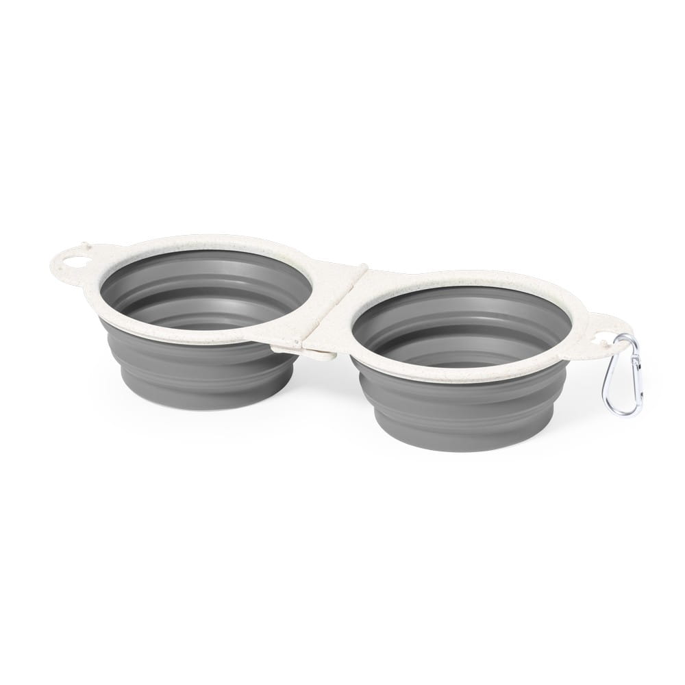 Promocje:Podwójna miska dla psa z elementami ze słomy pszenicznej, składana, karabińczyk V2120-19 /kolor: szary/