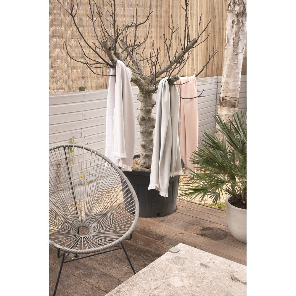 Ręcznik, szybkoschnący, odporny na pleśń, łatwy w czyszczeniu, można go wykorzystać również jako koc, obrus oraz ręcznik do jogi, wykonany z mieszanki 78% bawełny z certyfikatem OEKO-TEX (w procesie produkcji nie są wykorzystane żadne szkodliwe substancje lub barwniki) oraz w 22% z bawełny z recyklingu, każdy ręcznik pozwala na oszczędzenie 1409,2 l wody, dzięki zastosowaniu technologii śledzącej AWARE™ wykorzystane włókna są identyfikowalne z pochodzenia, 2% wpływów z każdego sprzedanego produktu jest przekazywane na rzecz Water.org, można prać w pralce, wymiar 100 x 180 cm, wyprodukowany z Portugalii