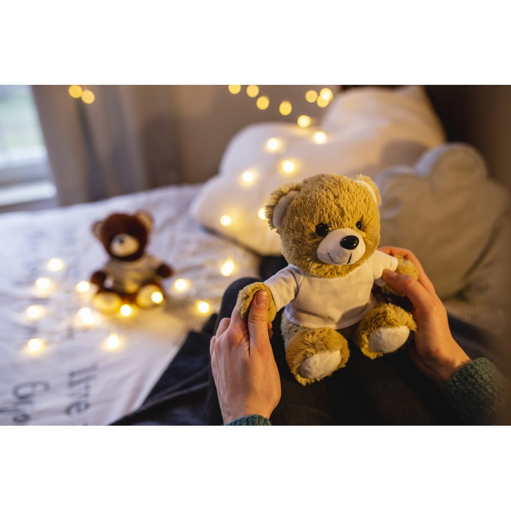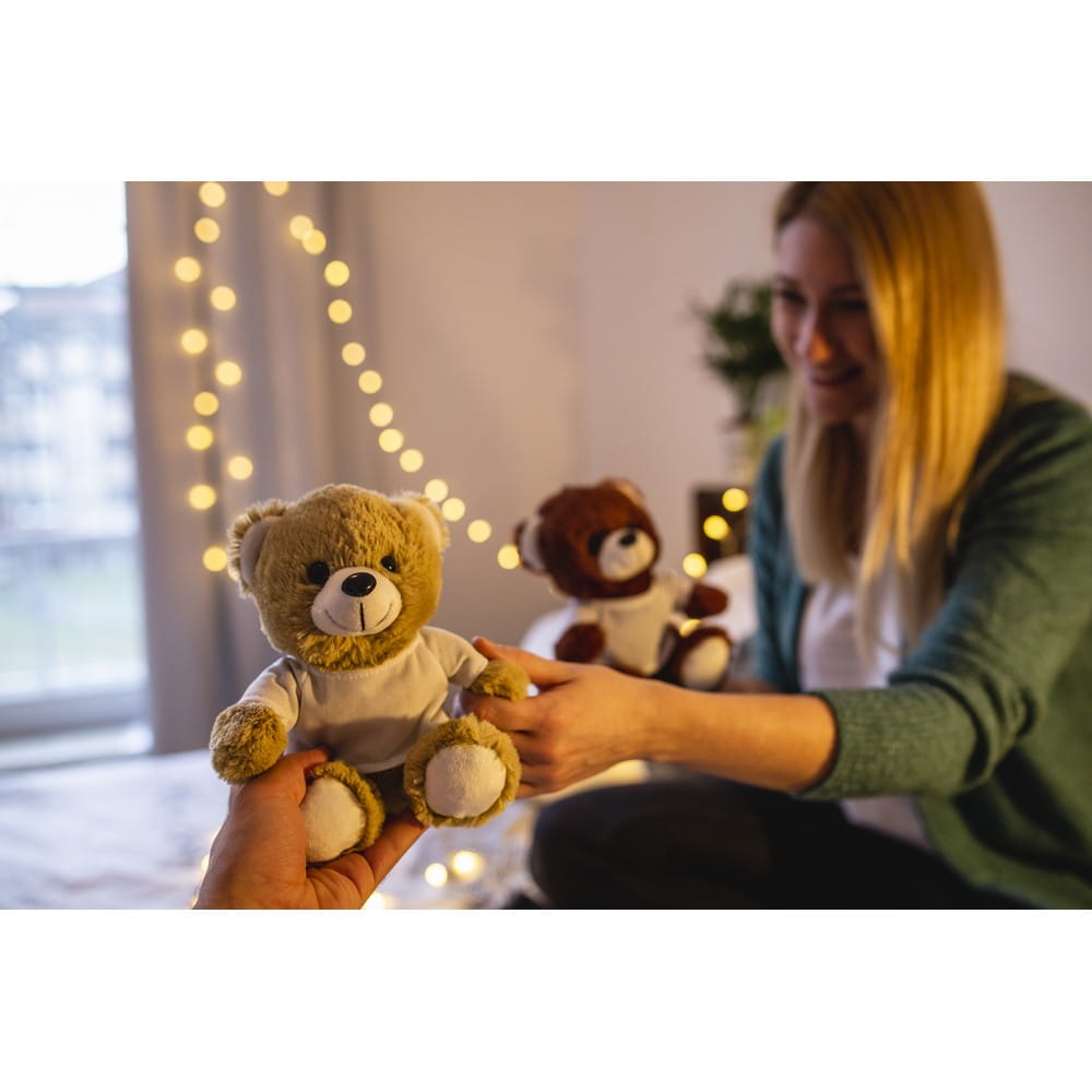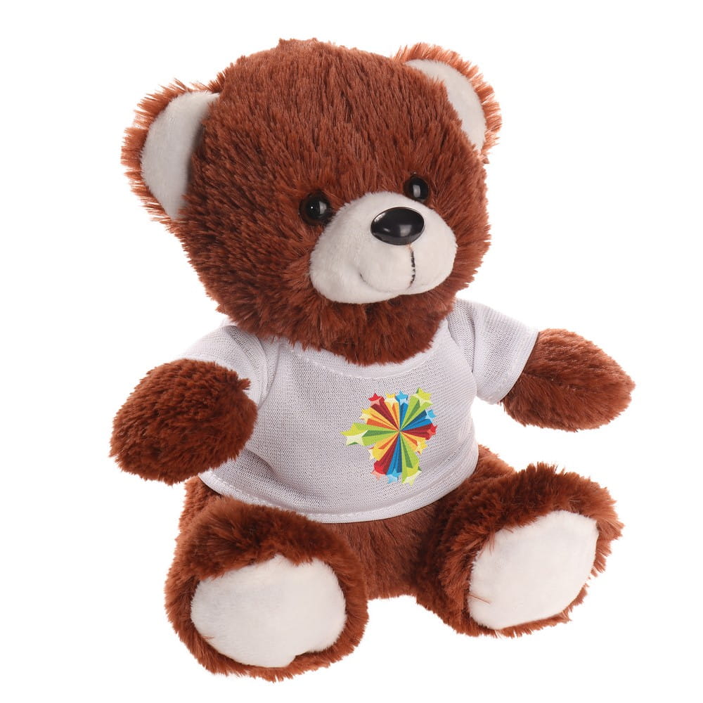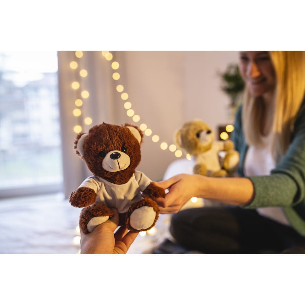 Roger Brown, pluszowy miś HE773-16 /kolor: brązowy/ Brązowy miś z białą koszulką pod nadruk (koszulka pakowana oddzielnie) Wymiary: 17 cm Materiał: plusz, poliester Ten produkt znakujemy termotransferem - TF3 lub TF4