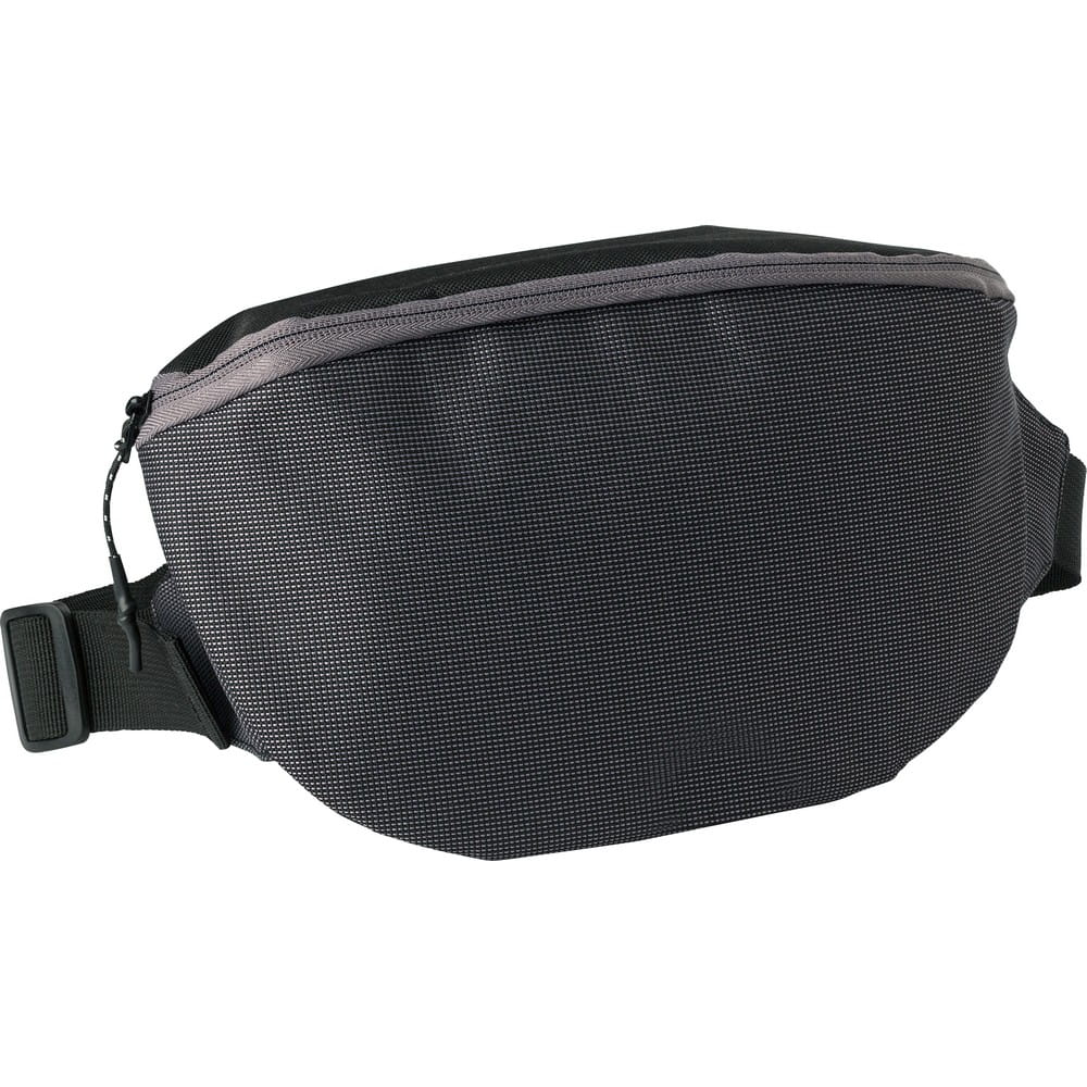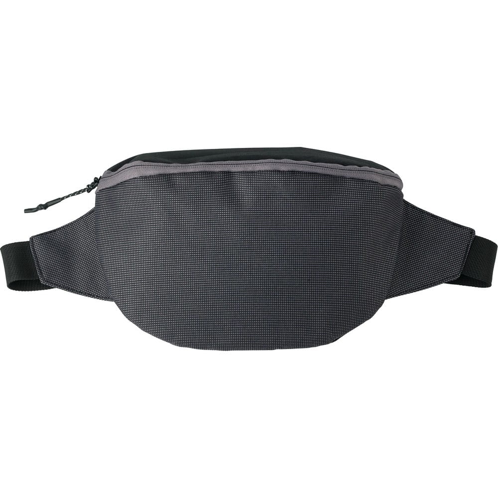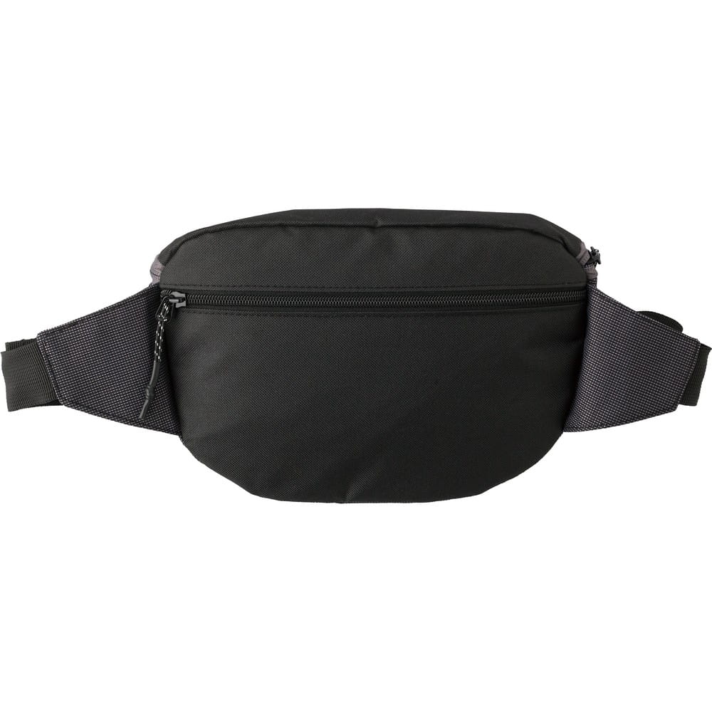 Saszetka zapinana w pasie, dwie przegrody zamykane na zamek, regulowane zapięcie na klamrę