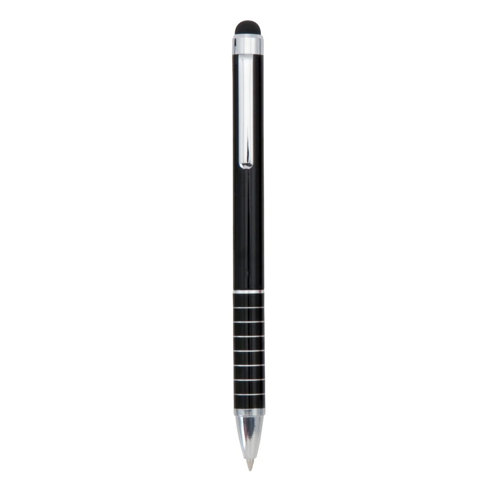 Długopis, touch pen z czarną, gumową końcówką. Wymiary: _0,9 x 12,5 cm; Materiał: aluminium. Technika znakowania: grawer. Jeśli masz pytania dotyczące produktu lub zamówienia innego nakładu, skontaktuj się z nami.