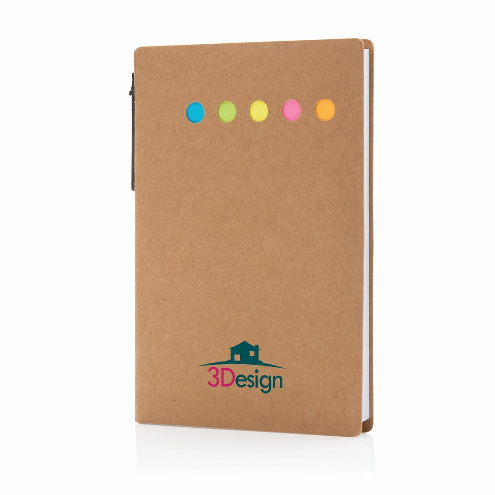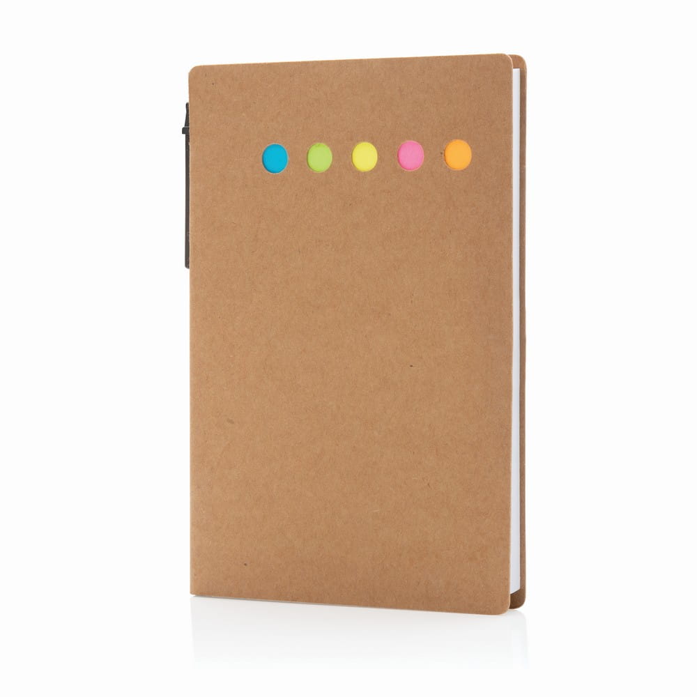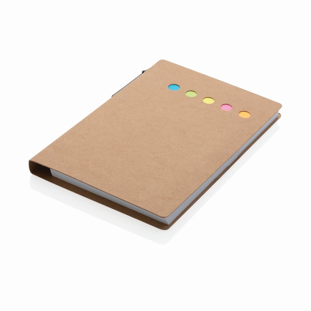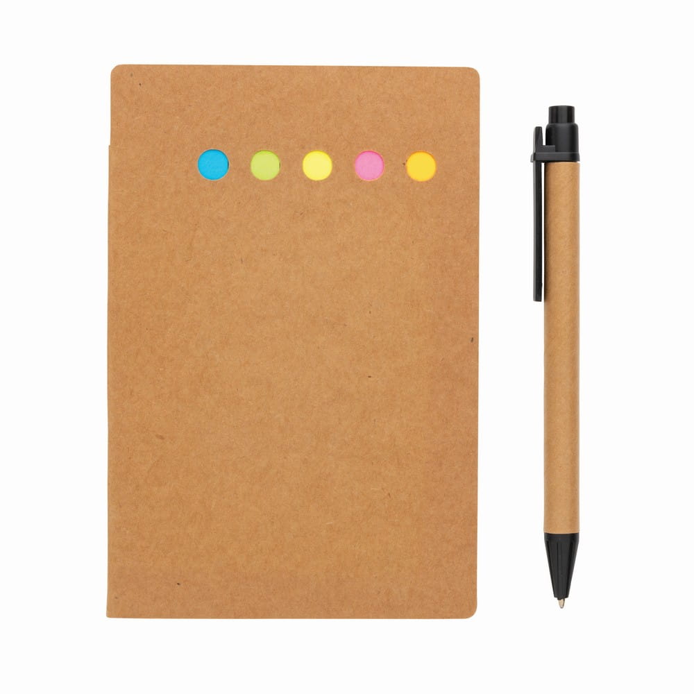 Zestaw do notatek, karteczki samoprzylepne, w zestawie mały długopis wykonany z papieru z recyklingu i ABS, niebieski tusz, długość pisania do 800 m, okładka z papieru kraftowego o gramaturze 350 g/m2, wewnątrz bloczek większych karteczek 50 szt., oraz 4 małe bloczki i jeden średni zawierające 25 kartek każdy