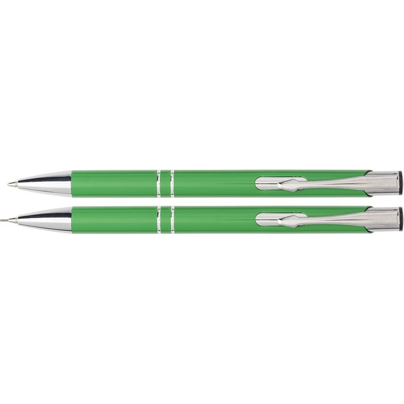Zestaw piśmienny, długopis i ołówek mechaniczny V1956-10 /kolor: jasnozielony/ Zestaw piśmienny, długopis i ołówek mechaniczny, etui w komplecie. Wymiary: 16,3 x 5,5 x 2,2 cm. Materiał: aluminium, EVA. Ten produkt znakujemy grawerem laserowym - G1 lub tampodrukiem - T2