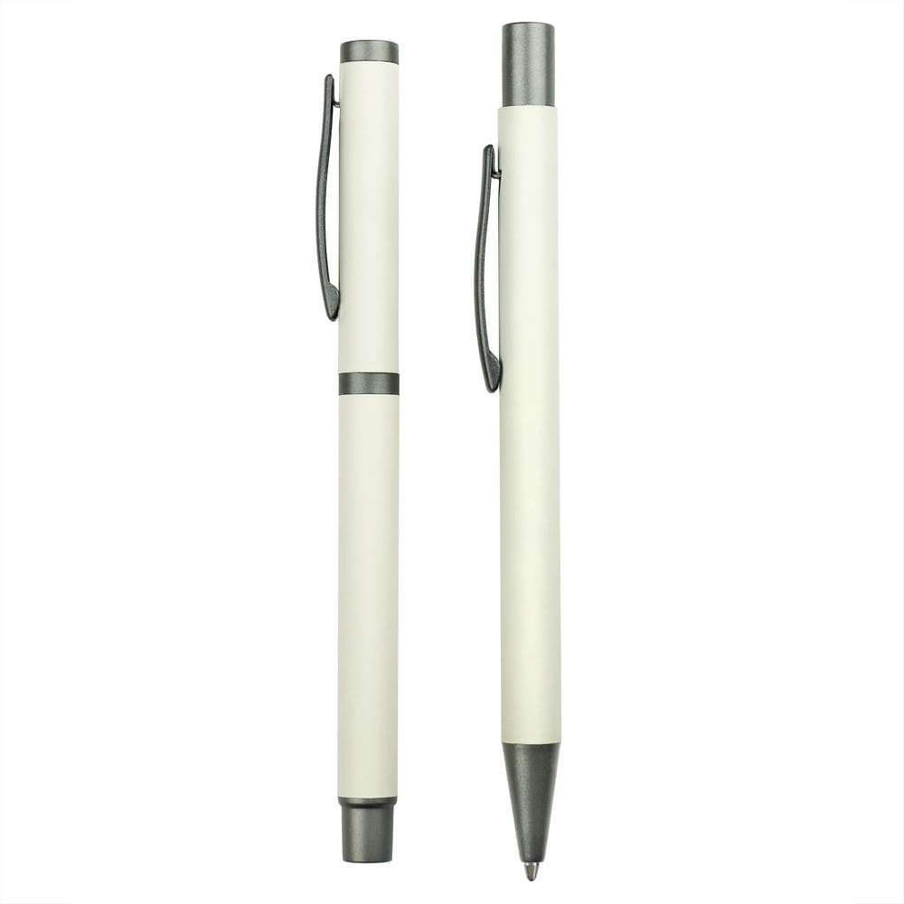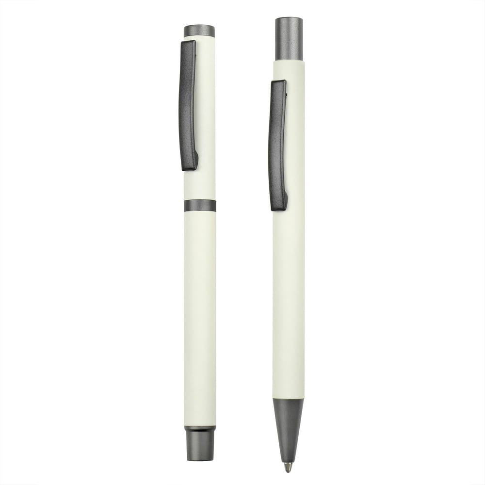 Zestaw piśmienny, długopis i pióro kulkowe, gumowane wykończenie.