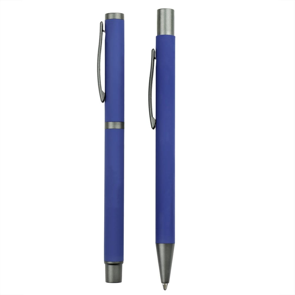 Zestaw piśmienny, długopis i pióro kulkowe, gumowane wykończenie.