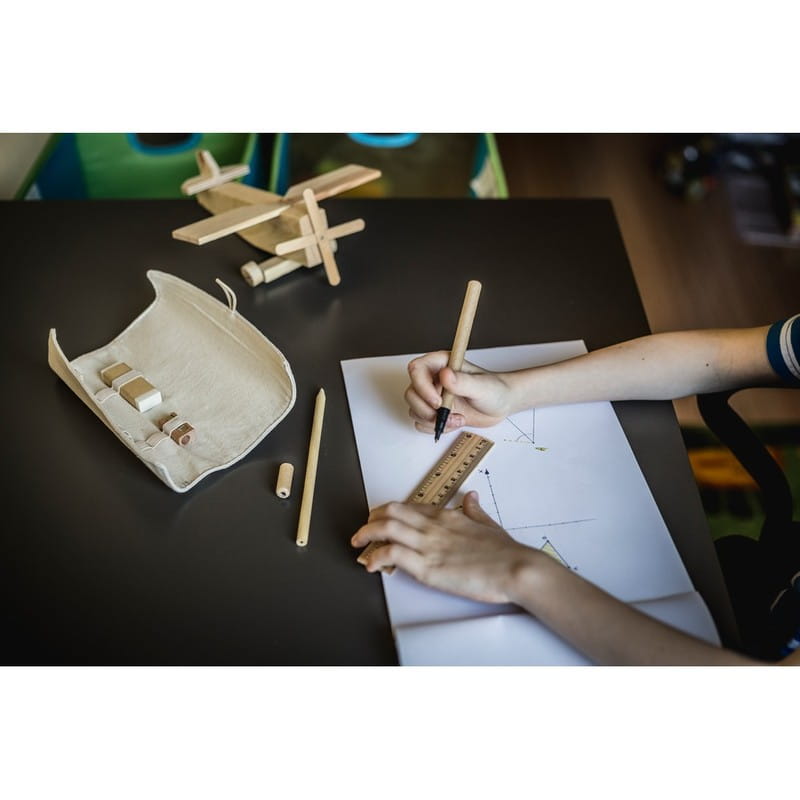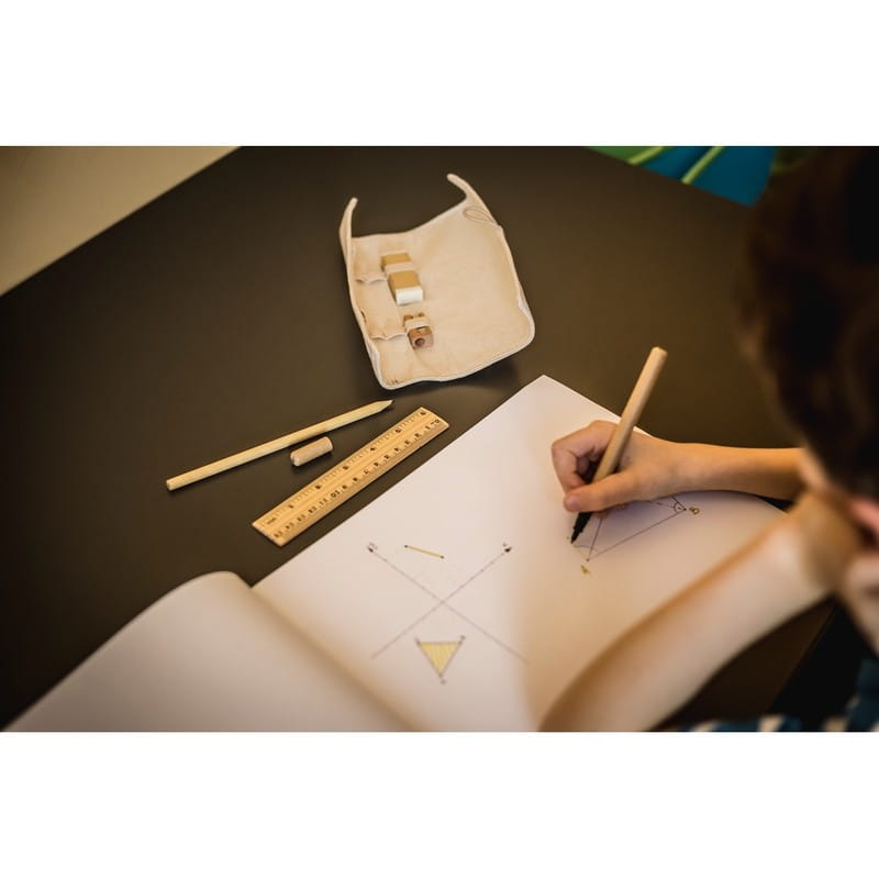 Zestaw szkolny w ekologicznym etui, linijka, ołówek, długopis, gumka i temperówka. Materiał: bawełna, drewno, papier. Wymiary: 19 x 5 x 2,5 cm. Technika znakowania: termotransfer /TF1/. Jeśli masz pytania dotyczące produktu lub zamówienia innego nakładu, skontaktuj się z nami.